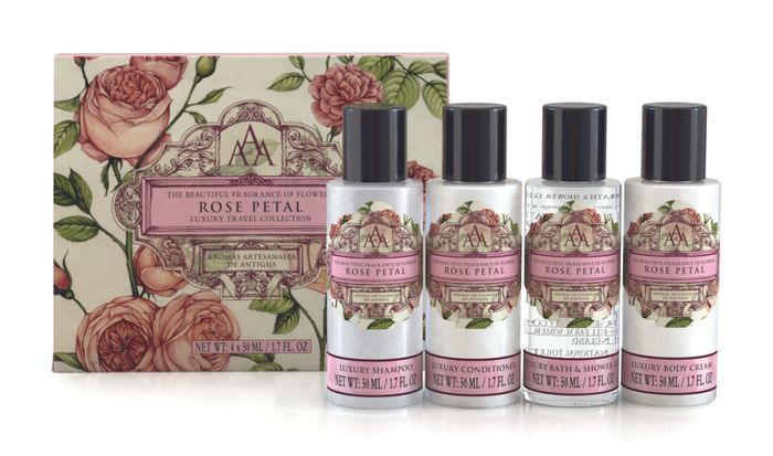 Each gift set includes a luxury travel size shampoo, conditioner, shower gel and a body cream.
