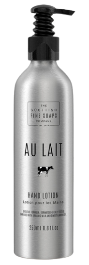 Presented in a stylish pump bottle, this creamy Hand Lotion blends the natural goodness of milk with rejuvenating sweet almond oil to gently nourish your skin. Your hands will be beautifully soft and healthy, with the cotton-fresh scent of Au Lait.
